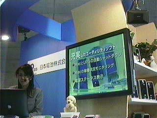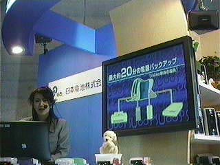 (コンパニオンのお姉さん)バックアップ時間も最大約20分間ありますから、例えばブレーカーが落ちてしまった時にも落ち着いてブレーカーを元に戻して、作業を再開する。あるいはデータをセーブしてシステムを終了させることも20分間あれば十分ではないでしょうか。